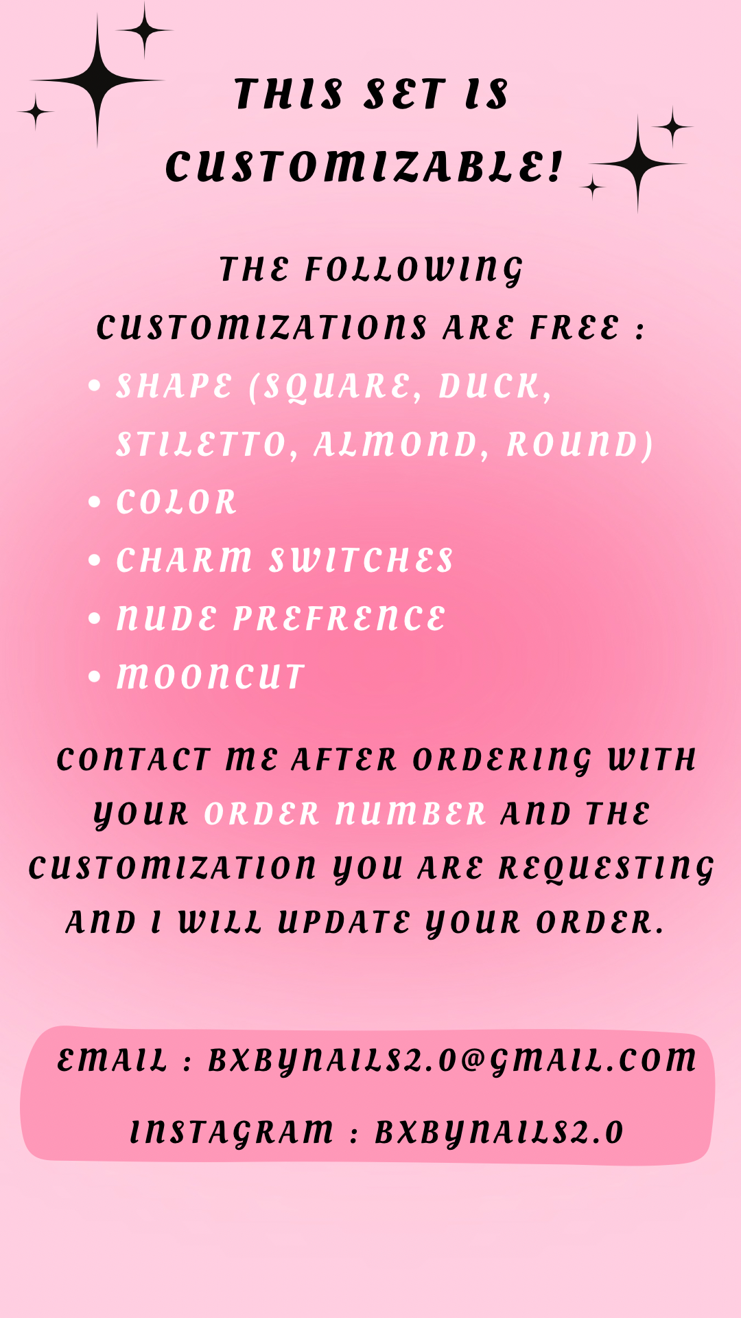 Thank you for your interest in my press on nails! If you have any questions that aren’t answered below, please contact me!